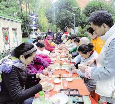 居民们在共享花园体验“非遗”制作技艺。