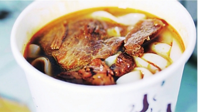 李记秘制牛肉粉挑起水陆街过早的大梁。