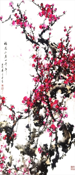 画梅,我的梅花属于大写意的,从艺术的角度来说,我已经画出了自己独特的风格。我的大师兄王修隆先生评价我画的梅花时说:“你画的这个梅花前无古人,后面还不知道还有没有来者。”