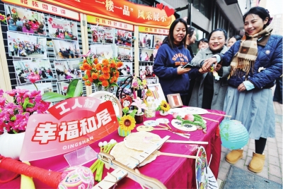 社区居民制作的各种手工艺品在现场展示。