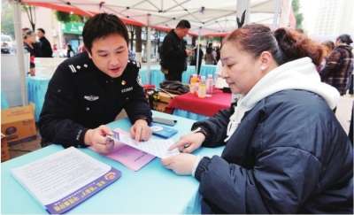 民警刘博彬向居民宣传反诈。