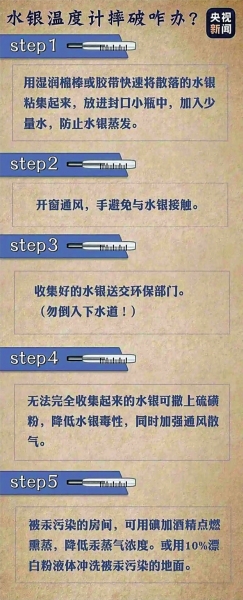 专家介绍,汞是常温下唯一呈液态的金属,易挥发成汞蒸气。一支标准水银体温计含汞约1至2克,一旦破碎,汞会迅速挥发,短时间内可使室内汞浓度超标数倍甚至数十倍。吸入汞蒸气会损害神经系统和肾脏功能,儿童、孕妇对其更敏感,可能导致发育迟缓、胎儿畸形等不可逆伤害。