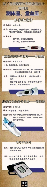 专家表示,在正确使用的情况下,电子体温计准确性很高,可以满足日常需要,而且比水银体温计要安全。电子血压计因其操作简单、便于携带,也越来越受到消费者的欢迎。这类产品有着数字显示清晰、操作简单、安全性高的优势,适合不同人群广泛使用。