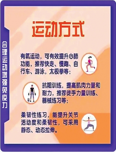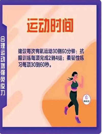 2.适度运动:规律、适量的运动能增强体质,促进血液循环,提升免疫细胞活性。