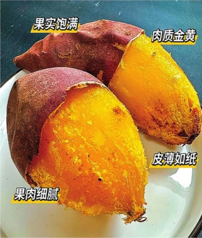 榴梿蜜薯是红薯新品种,它和榴梿其实没血缘关系,因具有类似榴梿的软糯香甜口感而得名,果肉呈金黄细腻状,天生自带板栗香、奶香和蜜糖香。普通红薯甜度也就20多度,它随便一测都能飙到40度以上,其果肉金黄细腻,入口顺滑,质地柔润流蜜,适合蒸、烤、煮等多种烹饪方式。最绝的是果肉细腻无丝,老人小孩不用吐渣,简直像在吃液态焦糖。