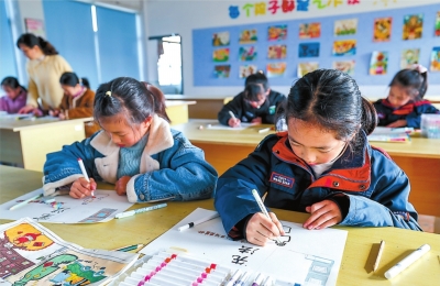 诸暨市暨南街道中心学校的学生绘制法治宣传画。