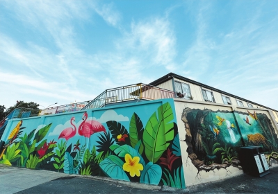 从常青花园地铁站出来,过马路就到了“常青滕市集”。入口处绿意盎然,墙面彩绘创意十足,令人耳目一新。