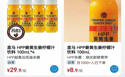 记者发现,这类姜黄衍生品的价格普遍偏高。以某品牌一款100毫升的姜黄饮为例,单瓶售价高达8元,有消费者吐槽“超级迷你,一口干”。
