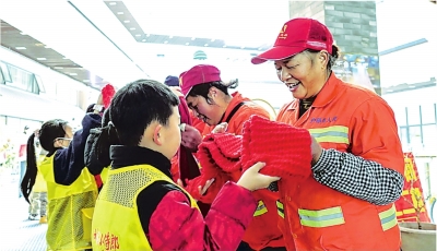 今年的冬至活动,在延续往年关爱环卫工人的基础上,进一步将温暖延伸至高龄老人和残疾人。十多名青少年提前在家编织好围巾,冬至当天,他们带着新鲜出炉的手工饺子和亲手编织的红色围巾送给老人。