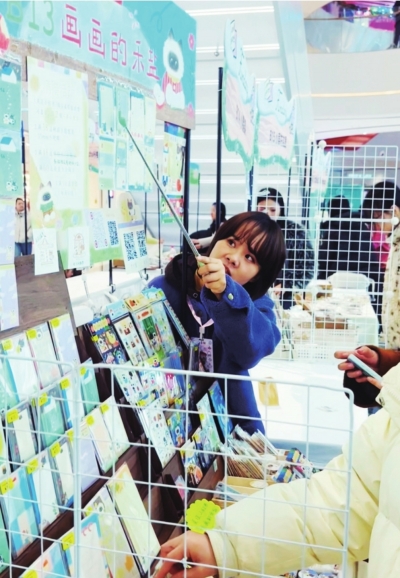 在手账集市上,“画画的禾盐”摊位店主石小姐正在为顾客介绍产品。她从小学习美术,从视觉传达专业毕业后,曾在一家文具企业担任设计师。如今,是一名培训机构的老师。