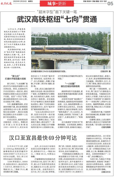 汉口至宜昌最快69分钟可达