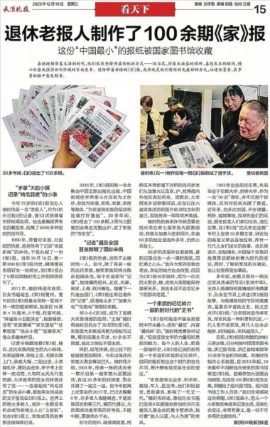 12月7日,退休老报人办了一份“中国最小”的《家》报一文,在《绍兴晚报》刊发3天后,即被《武汉晚报》12月10日“看天下”栏目全版转载。得知此事,一份珍藏的心意油然而生,我一心想马上寻找到这期《武汉晚报》。