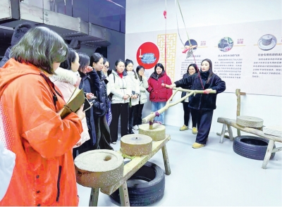 活动现场,幸福社区党委书记刘英通过宣讲和案例分享,凝聚治理共识。随后,参会人员前往北港社区民俗文化园、佳和云居小区石磨坊(如图)开展实地观摩。北港社区党委书记魏涔详细介绍了该传统文化场所的打造历程,分享了如何挖掘文化资源,让昔日闲置区域变身传承石磨技艺、弘扬传统文化的特色阵地。