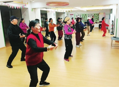 居民在居民客厅练习八段锦。