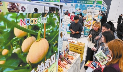 近日,客商在青岛现代农业博览会绿色有机蔬菜展位参观。