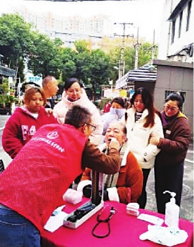 洪山区珞南街道街道口社区联合武昌区中南路街道宝通寺社区,在街道口小区共同开展口腔健康进社区活动。活动现场,吴天祥小组志愿者为居民提供免费血压测量和口腔健康检查服务,详细询问居民日常生活习惯及身体状况,针对每位居民的不同情况,耐心叮嘱各种注意事项,并讲解口腔疾病预防知识。活动吸引大量社区居民参与,特别是老年居民纷纷前来咨询检查。