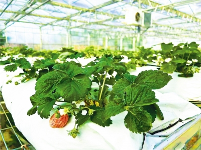 在花博会、木兰花乡、景秀大地、未来家园等田园综合体的连栋玻璃大棚里,草莓被铁架抬高住在“半空中”,它们的根系“吃”基质,“喝”营养液。