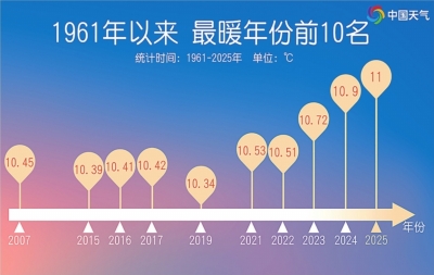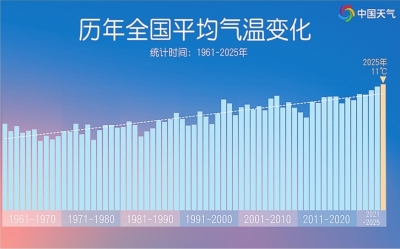 1月1日,国家气候中心发布最新消息,2025年全国平均气温达11.0℃,较常年(9.9℃)偏高1.1℃,打破2024年10.9℃纪录,再次创1961年以来历史新高。也就是说,我们又度过了有气象记录以来最暖的一年。