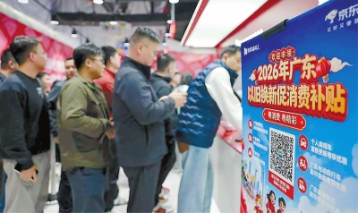 1月1日,领取相关补贴后的广州消费者在排队付费。