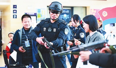 在刑事技术展区内,刑侦大队民警陈根正操作着便携式物证勘察箱:“这能提取现场微量痕迹,是破案的关键。”一旁,江夏区文化大道小学四年级学生何彬申仔细观看,神情专注。网安大队的警用旋翼无人机、检查站陈列的各类枪械及管理系统,也让参观者近距离触摸到现代警务的科技脉搏。