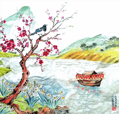 《迎春图》 国画