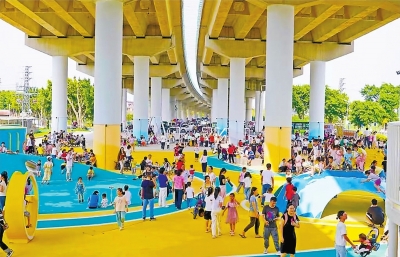 去年以来,广东广州市的许多市民惊喜地发现,多处闲置的高架桥下空间经过适儿化改造,成为孩子们的“宝藏游乐场”。