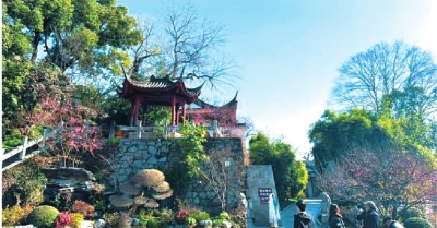 黄鹤楼公园跨鹤亭立于高台上,周围原无梅花。近年进行景观提升时,采纳杭州园林专家余昌明建议,在亭旁种上一株红梅,在亭下北侧、南侧也各种一株梅花,形成“品”字形格局,既衬托亭台之美,又彼此呼应。如今,这处梅花景点已成为热门打卡点。