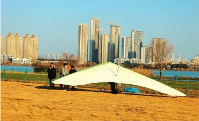 记者来到青菱湖西岸青菱河路边,一片开阔舒展的草地豁然映入眼帘。营地工作人员正在进行轻型固定翼运动飞机测试,吸引不少散步市民驻足围观。“这片营地并非单纯的产业园区,中间特意预留了大片公共空间,就是为了给市民提供一个散步游玩的好去处。”武汉洪投智航科技有限责任公司市场运营部部长陈曦介绍。