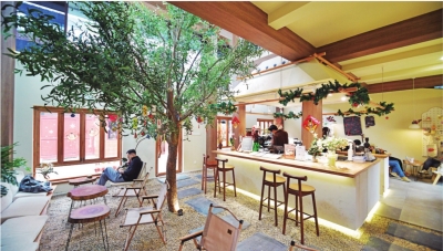 青山正街上的咖啡店环境舒适,吸引了游人在此小憩。