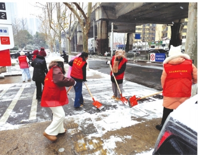 “出发!”随着社区党委书记兼“一呼百应”志愿服务队队长任莲芳一声令下,队员们按预定方案分赴责任区。铁锹铲雪声、扫帚扫地声、相互提醒的呼喊声,在这寒冷的清晨奏响了一曲特殊的交响乐。