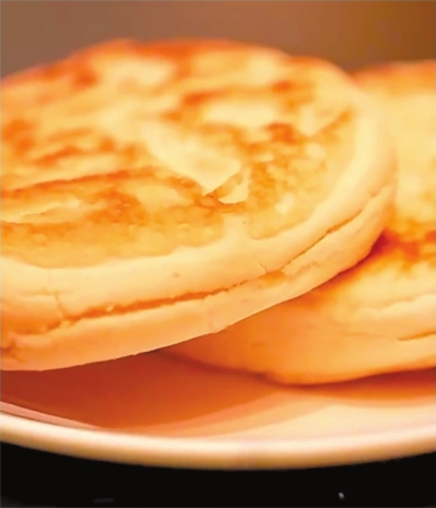 高原小麦烤制的饼外酥内软。