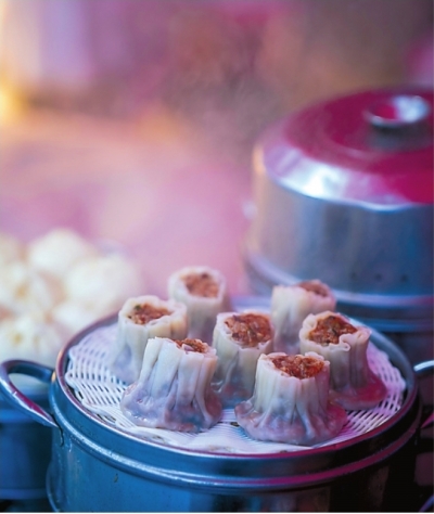 热气腾腾的烧卖刚刚出锅。