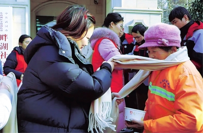 活动现场,社区志愿者将一碗碗热气腾腾的腊八粥递到户外工作者和居民手里,大家一边吃一边挑选心仪的窗花和春联,社区书法爱好者刘明德、易其德两位老师提供“春联定制”服务,引得大家排起长队,一副副寓意吉祥的春联送到大家手上。快递员肖伟开心地表示“这个春联写得太好了,我让老师给我写了一副带回家”。现场还设置了磨菜刀、中医把脉问诊、量血压、口腔检查、眼科咨询等公益便民服务。为真切感谢户外工作者们的辛勤付出,社区工会为现场的户外工作者们送上暖心包,包里有保暖的围巾与厚实的手套。