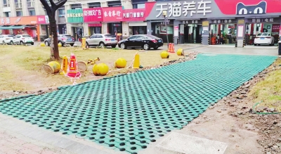 改造后,铺设植草砖,既能涵养水土、长草绿化,又能承载车辆通行。
