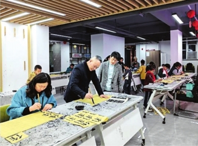 如今,书法已成为我日常生活的一部分。晨起练字半小时,让我以平静的心态迎接新的一天。我们社区的变化,正像书法中那渐渐晕开的墨迹,由中心一点,慢慢渗透、扩散,最终成就一幅完整的水墨画。
