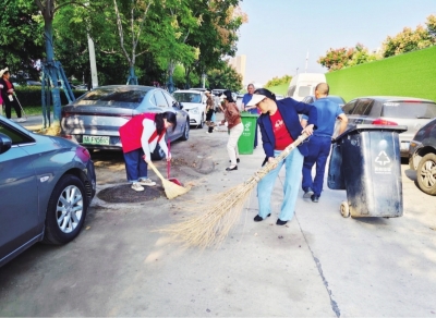 模特队参与社区清洁家园志愿活动。
