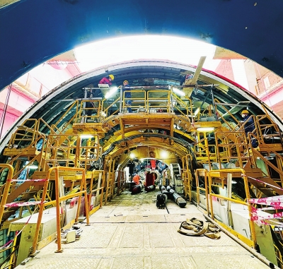 当天上午10时许,记者深入20多米深的江国路站实地探看,只见一台长约105米、四层楼高的“巨无霸”盾构机蛰伏地下,正在突破岩土桎梏。驾驶舱内,27岁的盾构主司机张浩阳紧盯操控面板,全神贯注守护巨型盾构机平稳掘进。他告诉记者:“我之前承担了12号线越江盾构任务,现在转战11号线,能够参与两次穿越长江的地铁建设,心中倍感自豪。”