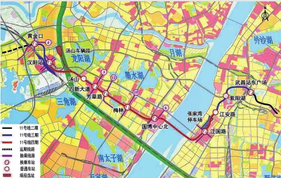 武汉轨道交通11号线四期工程线路走向示意图。