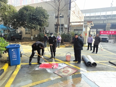物业为居民清洗地毯。