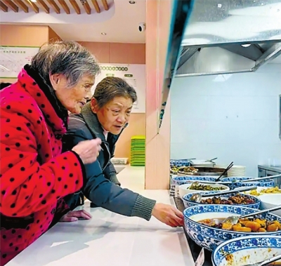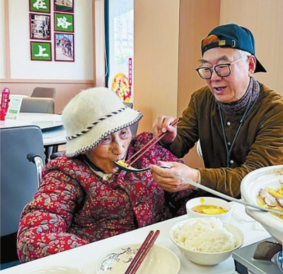 女儿匆匆从医院赶来,她是去为母亲配药的,手里还拎着药袋,“妈妈喜欢楼下餐厅的菜,花样多,味道也好”。她挽着母亲慢慢走向一楼“长者邻里食堂”,仔细挑选合适的蔬菜与肉类,“她的牙口不如从前了”。