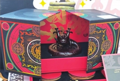 三联书店门前广场上的“楚国礼物”江汉路新春庙会快闪店内,“蟠龙飞凤”香薰盒就摆在最显眼处。香薰盒以湖北省博物馆青铜器龙凤元素为灵感原创设计,手工雕刻的黑檀木古朴沉稳,一经推出就成为店内爆款。一旁的黄鹤楼毛绒玩偶挂了满墙,用手一捏玩偶就会“吐泡泡”,这是当下年轻人中正流行的“捏捏玩偶”。