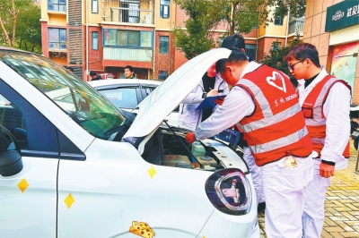 大白汽修志愿服务队为居民服务。