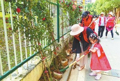 志愿者们参与种植“月季长廊”。