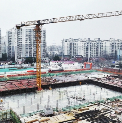 2月9日上午,冬日暖阳洒在古四公园的建设工地上,3栋被绿色防护网包裹的老厂房正待“新生”。屋顶上,钢结构屋架在吊车的牵引下缓缓就位;地下深基坑里,施工人员正为公共停车场建设忙碌不停……