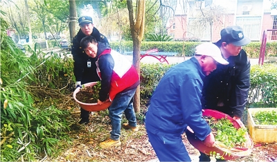 清理小区被占公共绿地。