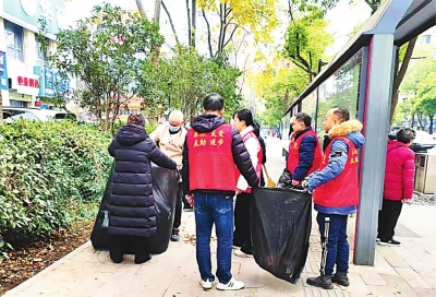 社区志愿者主动清理街道垃圾。