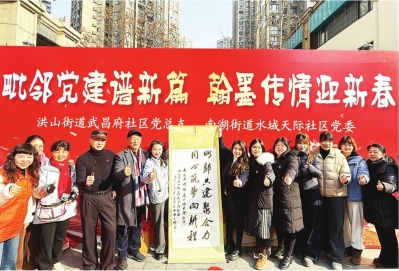 近日,武昌区南湖街道水域天际社区党委与洪山区洪山街道武昌府社区党总支携手,共同开展“毗邻党建谱新篇 翰墨传情迎新春”活动,让居民在浓浓年味中感受党建温度与邻里温情。