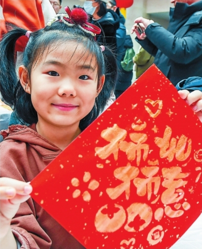 小朋友展示创意福字。