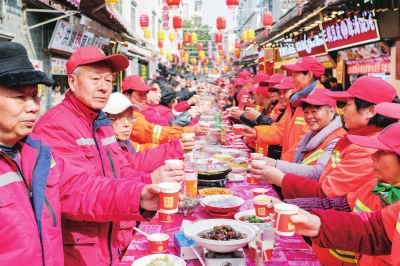 130名城市建设者同吃团年饭