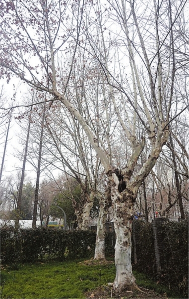 2月10日上午,记者来到市园林科学研究院的悬铃木科研苗圃,市园林科学研究院植物研究所高级工程师张思思介绍,这里培育着该所扦插繁殖的“园科22”,“与普通法桐相比,它们未来的结果量将减少90%以上”。